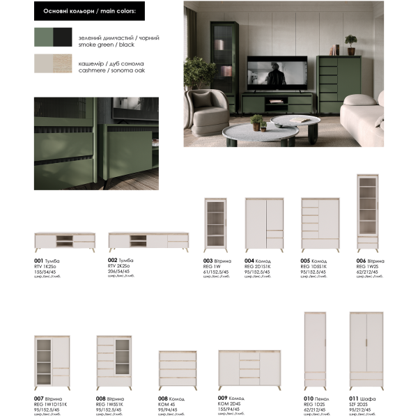 Комод Лаундж KOM2D4S Зелений димчастий/чорний Гербор (Gerbor) Україна