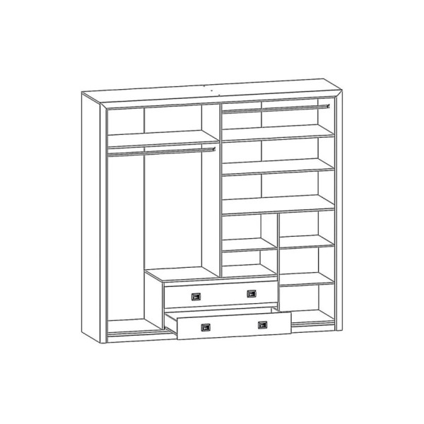 Виготовлений у Гербор (Україна) цей чотиридверний шафа має розміри 214 x 57 x 208 см, що дозволяє вмістити все необхідне. Корпус з ДСП та фасад з МДФ забезпечують довговічність конструкції, а телескопічні направляючі повного висування для двох ящиків - зручність у використанні. Поперечна рейка для вішалок доповнює функціонал.